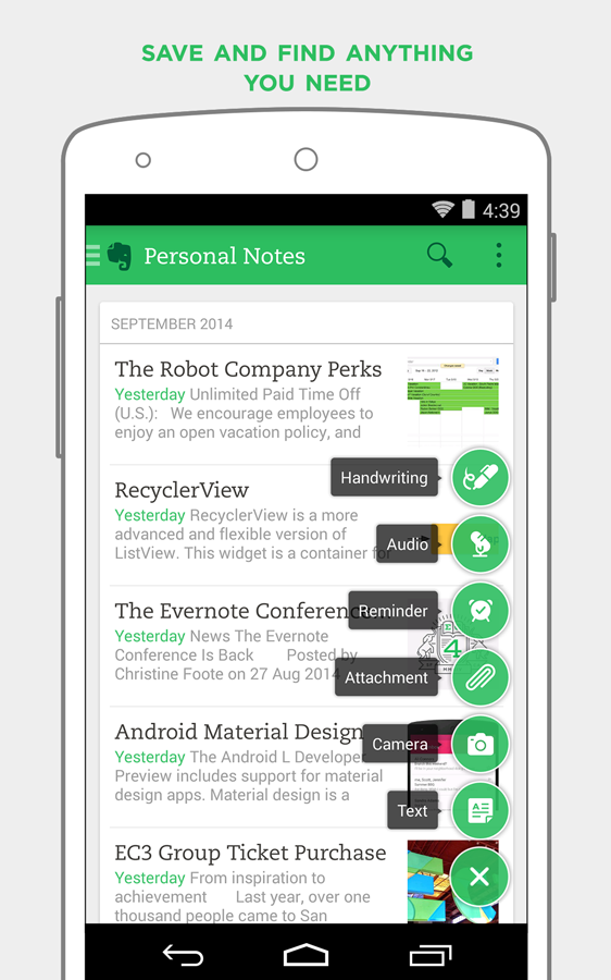Captura de pantalla de Evernote